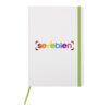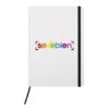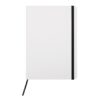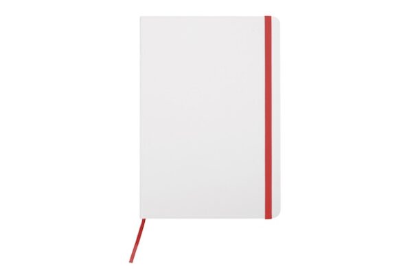 21 x 14,5 x 1 cm. Cartón. Libreta de tapa dura color blanco. Contiene 80 hojas rayadas, señalador y cierra con banda elástica del mismo color.