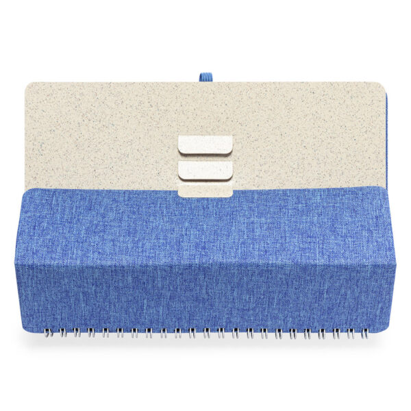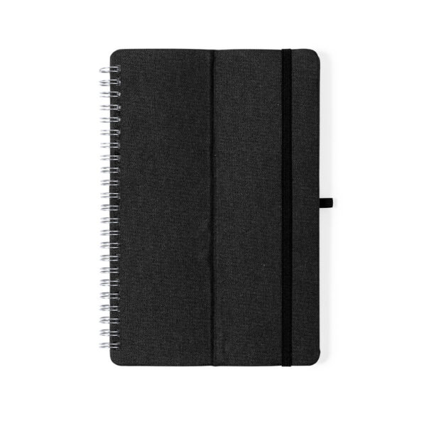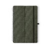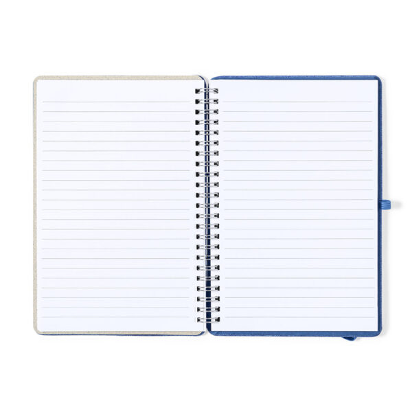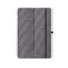 Libreta soporte de anillas de línea nature. Tapas rígidas fabricadas en resistente material RPET 300D, elaborado a partir de plástico reciclado. Con original soporte para smartphone y tablet integrado en la portada y fabricado en caña de trigo. Incluye elástico de cierre y soporte para bolígrafo a juego. 70 hojas interiores con disposición a una raya y disponible en variada gama de colores. Con distintivo RPET en contraportada y presentada en bolsa individual reciclada. Portada Rígida. 70 Hojas