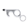 Llavero higiénico anti-contacto con bolígrafo y puntero integrados. Fabricado en resistente ABS de acabado metalizado y disponible en variada gama de colores. Especialmente diseñado para evitar tocar con las manos superficies de uso común (manivelas de puertas, interruptores, grifos de uso público, cajeros automáticos…). Con cómodo troquel para el dedo y presentado en bolsa individual de diseño. Recomendado para marcaje en tampografía. Bolígrafo Puntero Incluido