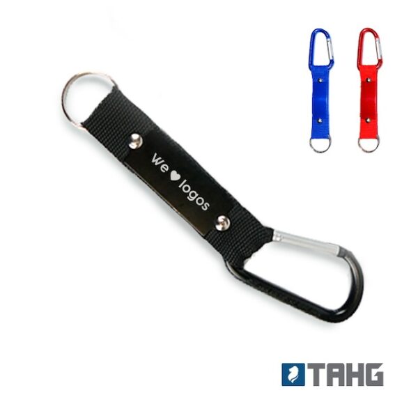 Llavero tejido de Polyester con un mosquetón de seguridad y una placa de metal para personalizar. La placa puede ser utlizada para domes o grabado láser. Medidas: 13 cm x 3,1 cm incluído el anillo (anillo de 25 mm). TAHG. LOGO24: Producto disponible para el servicio de logueo en 24 horas respetando unidades mínimas de logueo y 1000 unidades máximas. Consultar términos y condiciones del servicio.