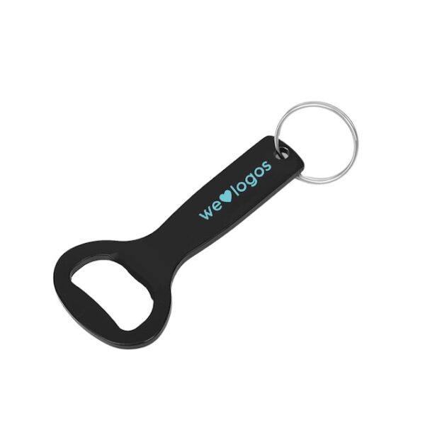 Llavero con destapador de aluminio. Medidas: 8,3 x 3,9 cm.
