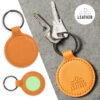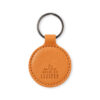 Llavero de línea nature fabricado en cuero reciclado. En tono marrón, con diseño circular y de acabado cosido. Grabado con distintivo cuero reciclado en una cara, con lado opuesto liso para impresión. Anilla metálica cromada y presentado en bolsa individual kraft. El cuero reciclado rescata las fibras desechadas en los procesos de fabricación del cuero, minimizando el desperdicio de material, contribuyendo a reducir el impacto ambiental y manteniendo a la vez sus propiedades originales.