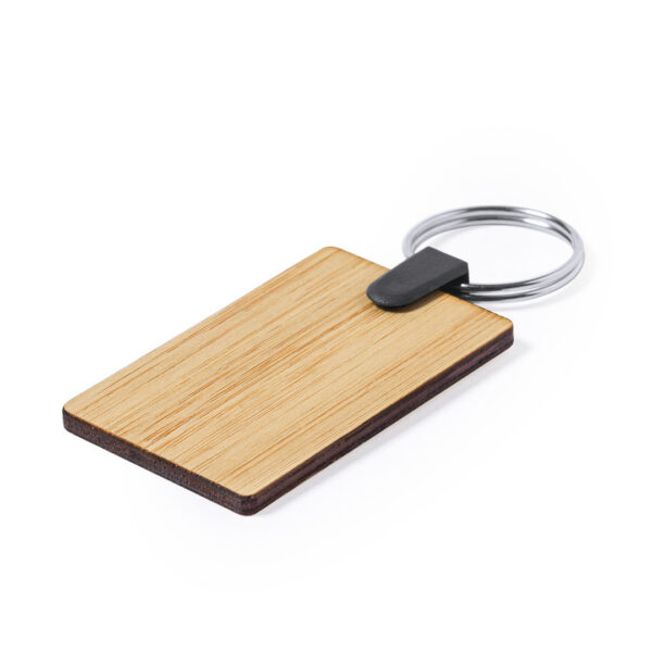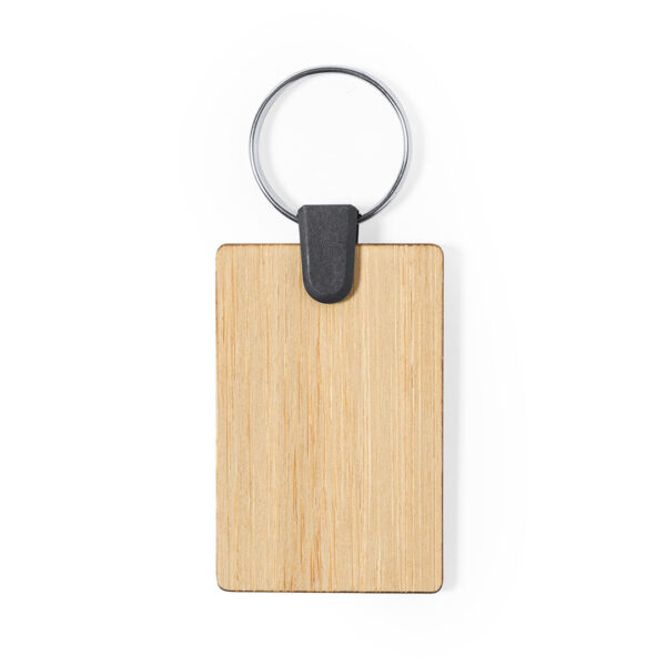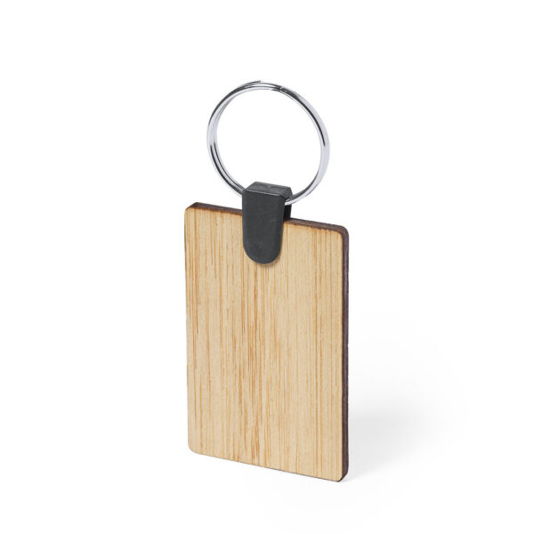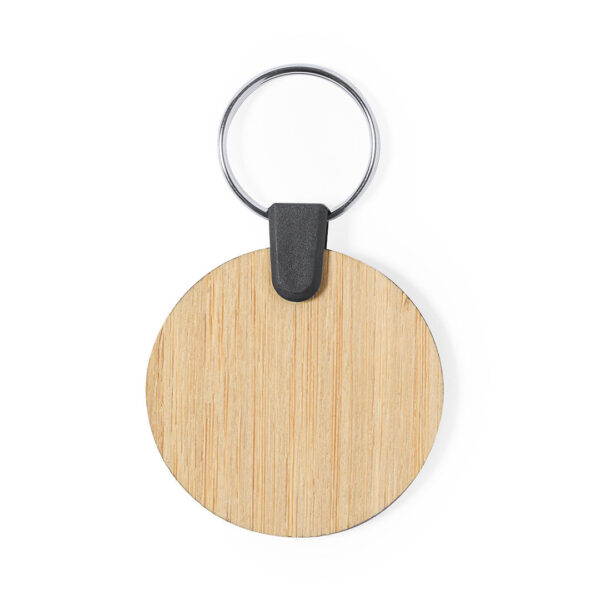 Llavero de línea nature, hecho en bambú procedente de cortes naturales. De fabricación europea y disponible en diseños circular y rectangular.