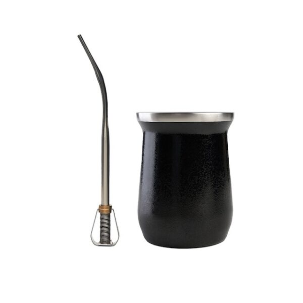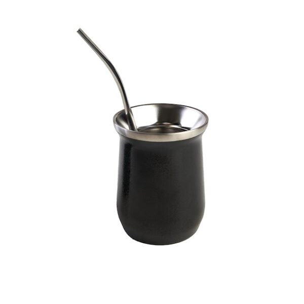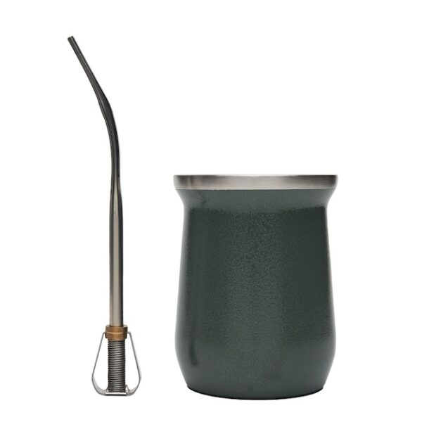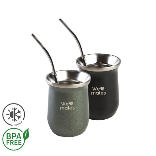 Mate realizado en acero inoxidable bicapa 304 (18/8). Cuenta con doble pared aislante que mantiene la temperatura durante toda la cebada, manteniendo 30 minutos el agua caliente y 3 horas el agua fría. No traspasa sabores ni aromas a tu yerba. Producto libre de BPA. Incluye bombilla de acero inoxidable. Medidas: Altura: 10.5 cm. Diámetro: 8 cm. Capacidad: 256 ml. Colores disponibles: Verde y Negro