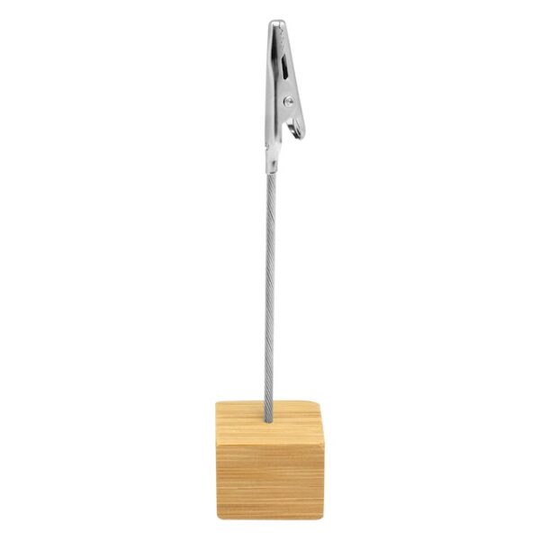 Novedades2,5 x 2,5 x 2,5 cm. Alto 11,5 cm Bambú y metal. Memo clip de escritorio con base cúbica en bambú. Broche pinza cocodrilo de metal. Práctico, útil y transportable.