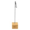 2,5 x 2,5 x 2,5 cm. Alto 11,5 cm Bambú y metal. Memo clip de escritorio con base cúbica en bambú. Broche pinza cocodrilo de metal. Práctico, útil y transportable.