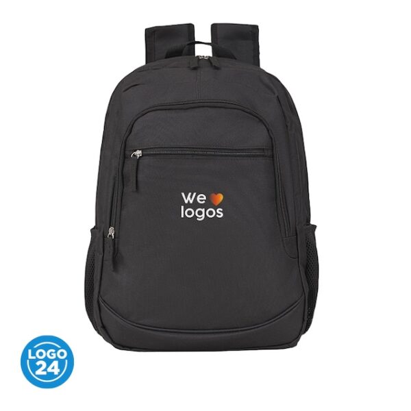 Mochilas, Novedades, TodosMochila portanotebook, con respaldar acolchado, confeccionada en 100% polyester. Cuenta con dos bolsillos principales, un segundo bolsillo frontal, y laterales de red para transportar botellas o pequeños objetos. Dimensiones: 32 ancho x 45 de alto x 14.5 de profundidad Capacidad: 21 litros . Notebook: 15,6″. LOGO24: Producto disponible para el servicio de logueo en 24 horas respetando unidades mínimas de logueo y 200 unidades máximas. Consultar términos y condiciones del servicio.