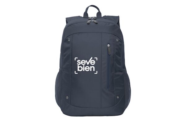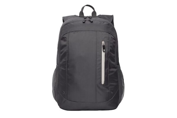 47 x 32 x 17 cm. Capacidad 25 litros aprox. Jacquard Poliéster 420D. Mochila portanotebook. Dos compartimentos con cierre. Compartimento principal con división acolchada porta notebook de hasta 15” con bolsillo y el segundo con tres espacios contenedores. Bolsillo frontal con cierre en color y dos bolsillos de red laterales. Cierres metálicos con tiradores de goma con detalles de color. Correas regulables y espalda acolchadas.