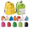 Mochila en resistente poliéster 600D de desenfadado diseño en variada gama de colores, con cierre de cremallera y bolsillo en frontal. Con esquinas reforzadas, tiradores con cinta para fácil apertura y Accesorios en color negro. Espalda acolchada y cintas de hombros ajustables con acolchado. Parte Trasera y Cintas Acolchadas