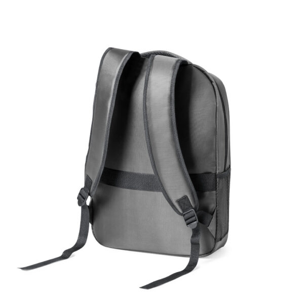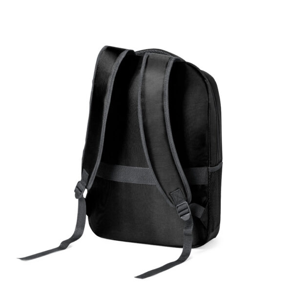 Mochila de alta calidad fabricada en RNYLON 420D. Compartimento principal con cierre de cremallera a juego y doble tirador. Incluye bolsillo exterior de cremallera y 2 bolsillos laterales de redecilla. Acolchado en asa, parte trasera y cintas para hombros, estas últimas ajustables. Interior con compartimento acolchado para ordenador portátil de hasta 15 pulgadas y accesorio en espalda para ajuste en trolley. Disponible en variada gama de colores, con distintivo reciclado en etiqueta exterior. El material RNYLON se elabora a partir de plástico reciclado, para así fomentar la reutilización de residuos plásticos y ayudar a la sostenibilidad del planeta. Bolsillo Acolchado para Portátil. Parte Trasera y Cintas Acolchadas