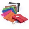 Monedero de alegre diseño con suave cuerpo acabado en brillante polipiel en variada gama de vivos colores. Compartimento principal y bolsillos frontal con cierre de cremallera a juego. Interior forrado a juego.