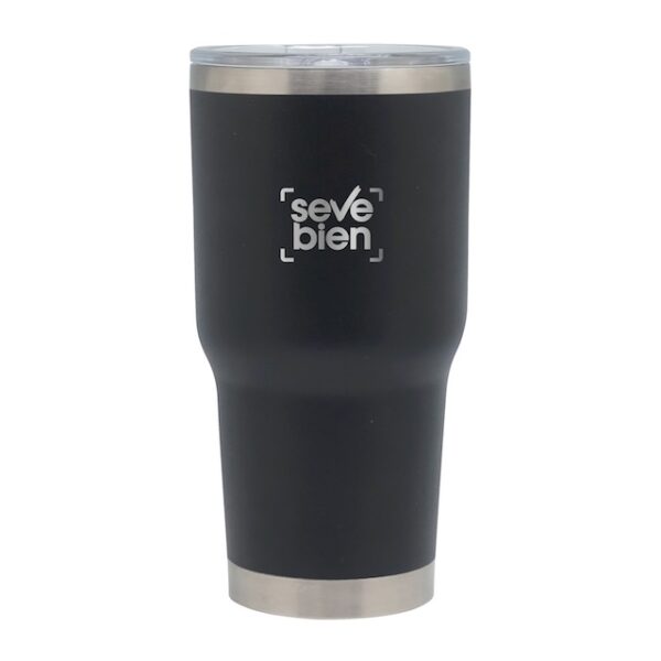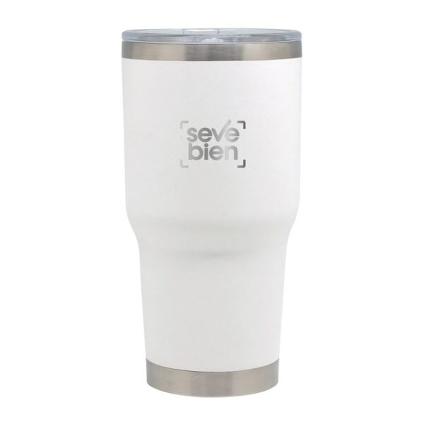 Ø 10 x 20 cm. Capacidad 850 ml. Acero Inoxidable. Mug doble pared, interior en acero 304 y exterior en acero 201. Pintura Powder Coat (pintura mas duradera y resistente a la corrosión y el paso del tiempo). Tapa plástica transparente a presión con cierre antiderrame. Mantiene las bebidas frías o calientes por más tiempo. Presentación en caja de regalo.