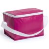 Nevera de 6 latas en resistente PVC de vivos colores. Interior isotermo en acabado de aluminio. Con cremallera y asa de transporte en color blanco a juego.