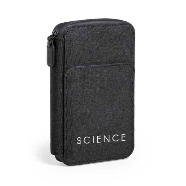 Organizador y esterilizador de luz ultravioleta tipo C, con protección RFID (Identificación por Radio Frecuencia) que mantiene seguros tus dispositivos de transmisión de identidad. Especialmente diseñado para la eliminación de microorganismos y bacterias en smartphones y otros objetos de uso cotidiano. Fabricada en resistente poliéster 600D de acabado denim, con cierre magnético de seguridad en tirador para un uso seguro del dispositivo. Incluye 4 tarjeteros interiores + bolsillo exterior. Presentado en atractiva caja individual de diseño. Potencia LED 1.2W y longitud de onda 275nm. Tiempo de esterilización con función auto-apagado de 1 y 3 minutos. Disponible manual de usuario en español e inglés. Disponible certificación CE, RoHS y de efectividad germicida. Para un uso adecuado del producto, evitar el contacto con la piel y los ojos. Luz Ultravioleta. Protector RFID. Conexión USB