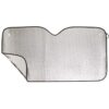 Parasol en aluminio con burbuja en ambas caras en color plateado de acabado metalizado con ribetes en color negro. De tamaño maxi 180x90cm, con argollas metálicas de refuerzo, cintas elásticas para plegado, dos ventosas para ajuste en luna y presentación desplegado en plancha para fácil impresión.