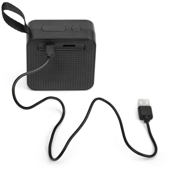 Parlante portátil con tecnología Bluetooth, micrófono manos libres y modo radio FM, realizado en ABS. Incluye ranura para lectura de tarjetas de memoria micro SD. | Batería de 500mAh | Potencia del parlante: 3w | Frecuencia:60Hz-16KHz | Conexión 5V/300mA | Peso: 133g | Medidas70 x 70 x 37mm | LOGO24: Producto disponible para el servicio de logueo en 24 horas respetando unidades mínimas de logueo y 56 unidades máximas. Consultar términos y condiciones del servicio