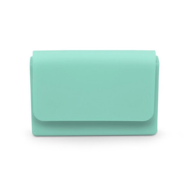 Portadocumentos de silicona. Para guardar documentos, tarjetas o usarlo como billetera o monedero. Tapa plegable, folio divisor y cierre con imán. Silicona. 9,5 x 6,5 x 1,5 cm.