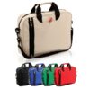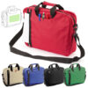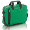 Portadocumentos de cierre de cremallera con original bolsillo frontal en vertical y compartimento bajo las asas en suave acabado de poliéster 600D en vivos colores. Con asas de transporte reforzadas a juego y cinta bandolera ajustable con cierres de mosquetón.