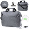 Portadocumentos de seguridad, con diseño urbano en resistente poliéster 300D. Bolsillo interior con protección de seguridad RFID (Identificación por Radio Frecuencia) que mantiene seguros los datos de la tarjeta y demás dispositivos. Asas con protección y compartimento principal con cierre de cremallera. Conexión USB -powerbank no incluido-, con bolsillos interiores acolchados para ordenador portátil de hasta 15 pulgadas y tablets de hasta 10 pulgadas. Cinta para hombro ajustable con protector acolchado. Bolsillo Protector RFID. Conexión USB. Bolsillo Acolchado para Portátil y Tablet