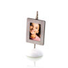 Portafotos de escritorio con clip portanotas metálico, marco imantado en acero inox y resistente base antideslizante en variados colores. Presentado en caja de PVC Marco Imantado. Fotos: 3,5 x 5 cm