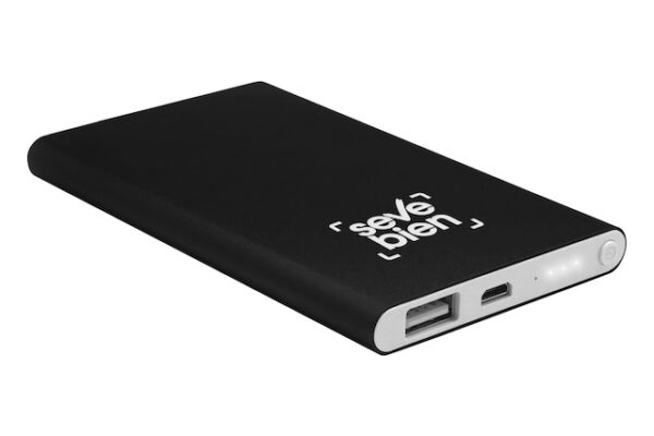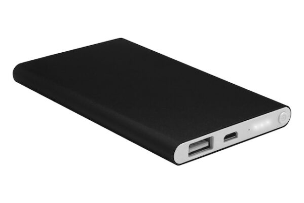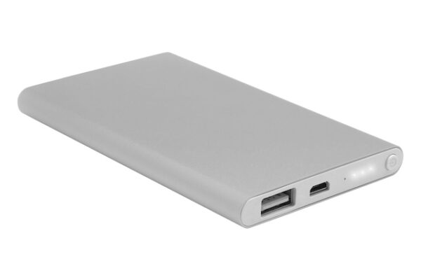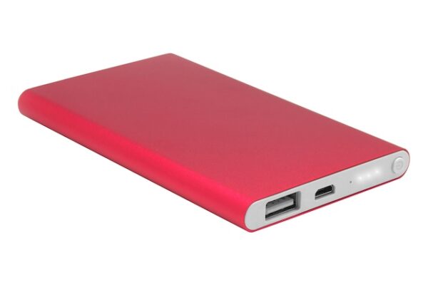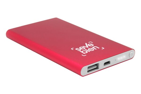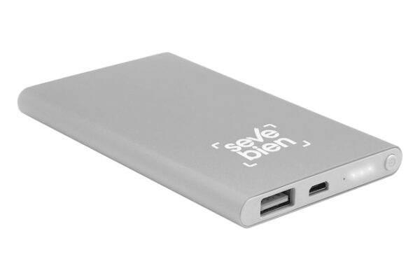 Novedades11 x 6,5 x 1 cm. Capacidad 4000 mah. Metálico. Power Bank. Cuerpo de color. Dos entradas: una USB y una mini USB. Botón de encendido y luces led indicadora de carga. Con certificación de calidad. Presentación en caja de regalo.