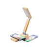 Reloj multifunción con pantalla táctil retroiluminada y cargador inalámbrico 15W integrado, con salida USB(5V DC 2A). Plegable y fabricado en bambú, con funciones fecha/hora y alarma. Lámpara con 16 LEDs y 3 posiciones de iluminación, con intensidad de luz regulable. Cable de carga Tipo C incluido y compatible con dispositivos equipados con tecnología de carga inalámbrica Qi. Presentado en caja individual de diseño kraft, con manual de instrucciones en español en inglés. Fabricado conforme a los estándares RoHS y en cumplimiento con los siguientes requisitos de seguridad: Sistema de protección contra sobrecalentamiento. Sistema de protección contra sobrecarga. Sistema de bloqueo para evitar cortocircuitos. 16 Ledes. 3 Posiciones de Luz. Intensidad de Luz Regulable. Conexión USB. Inalámbrico 15W. Salida USB. Plegable