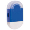 Set de goma y sacapuntas en vivos colores. Compartimento para residuos con capucha transparente. Goma y Sacapuntas
