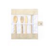 Set de cubiertos de línea nature fabricados en bambú pulido. Incluye tenedor, cuchara, cuchillo y pajita con cepillo limpiador. Presentados en funda plegable de canvas, con elástico interior para una firme sujeción de las piezas y cierre de seguridad con corchete. 5 Piezas. Funda Canvas