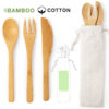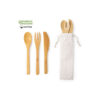 Set de 3 cubiertos de línea nature. Fabricados en bambú, incluye tenedor, cuchara y cuchillo. Presentados en funda de algodón con cordón auto cierre. 3 Piezas. Funda Algodón
