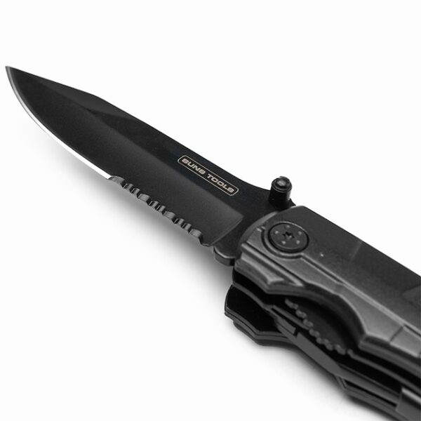 NovedadesMulti herramienta de acero inoxidable de 8 funciones. Incluye juego de 9 cabezales y funda. Cuenta con pinza, navaja y destornillador con cabezales intercambiables. Medidas: 4,3 x 14,3 x 15,5 cm. Suns Tools. LOGO24: Producto disponible para el servicio de logueo en 24 horas respetando unidades mínimas de logueo y 200 unidades máximas. Consultar términos y condiciones del servicio.