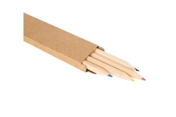 NovedadesSet de 4 lápices de colores, con mina de 2mm. Realizado en madera de pino. Incluye caja de cartón reciclado. ReUseMe. Incluye Gift Box confeccionada en cartulina Kraft.