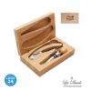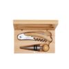 NovedadesSet de vinos en caja de bamboo de dos elementos. Posee: Sacacorchos dos tiempos y tapón, realizado en acero inoxidable. Medidas de la caja: 13 x 8 x 3,2 cm. La Baule. LOGO24: Producto disponible para el servicio de logueo en 24 horas respetando unidades mínimas de logueo y 200 unidades máximas. Consultar términos y condiciones del servicio
