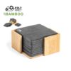 Set de 10 posavasos de línea nature. Fabricados en fieltro RPET reciclado, fruto de la combinación del proceso de reciclaje de materiales plásticos junto con la técnica milenaria de fabricación del fieltro, dando como resultado un material de eco-tendencia que, además de ser de origen reciclado, también se convierte en reciclable. Soporte fabricado en bambú y posavasos con distintivo RPET. Set presentado en caja individual de diseño kraft. 10 Piezas