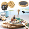 Completo set de quesos de 4 piezas. Con tabla de corte y presentación fabricada en pizarra y utensilios en acero inox y mango de bambú. Tabla de pizarra extraíble para fácil limpieza. Presentado en estuche individual troquelado de bambú y atractiva caja individual de diseño eco. 5 Piezas. Tabla Pizarra Incluida