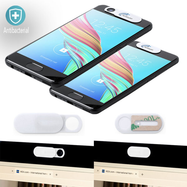 Tapa antibacteriana para cámara de dispositivo móvil, diseñada para proteger la privacidad. Con adhesivo 3M reutilizable y presentada en bolsa individual. Los productos con tratamientos antibacterianos son capaces de reducir drásticamente las cargas bacterianas presentes en las superficies de los materiales, gracias a la incorporación de agentes microbianos permanentes estáticos, con alta efectividad para inhibir y prevenir la contaminación bacteriana. Artículo de acuerdo al estándar ISO 22196, que determina la actividad antibacteriana en materiales plásticos y superficies no porosas, lo que permite conocer la efectividad de inhibición microbiana que tienen los aditivos sobre los objetos tratados mediante una evaluación cuantitativa. Adhesivo