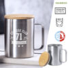 Taza de térmica de acero inox y 350ml de capacidad. Tapa fabricada en bambú y presentada en atractiva caja de diseño eco. 350 ml