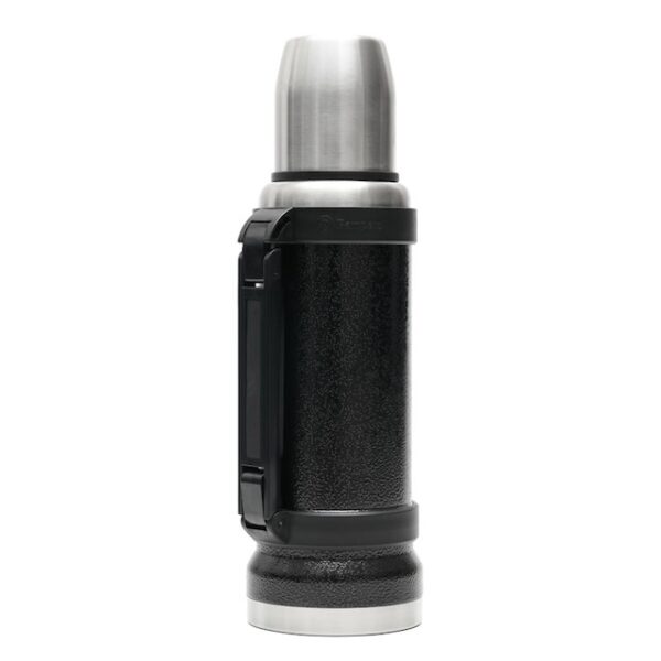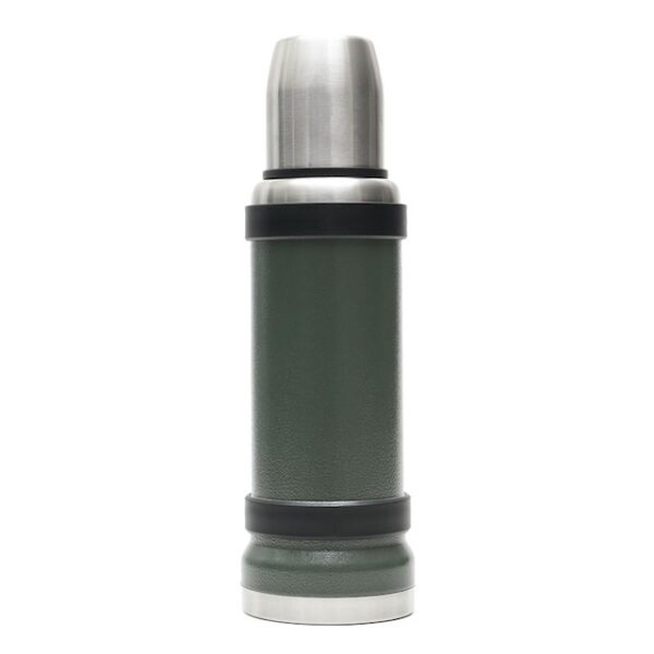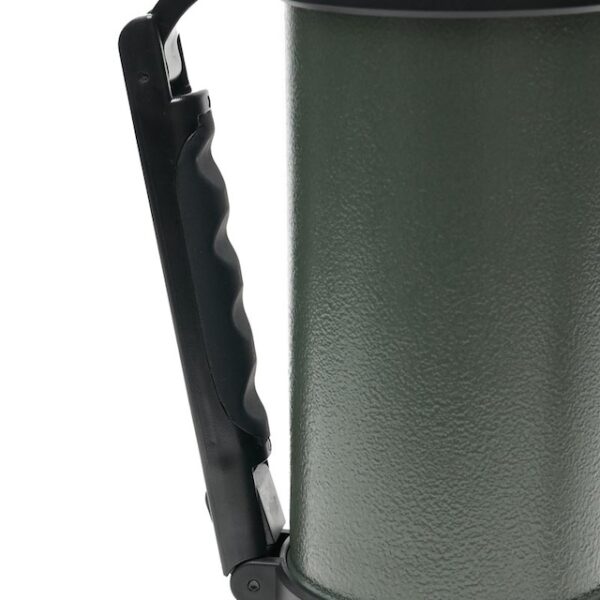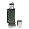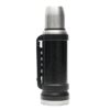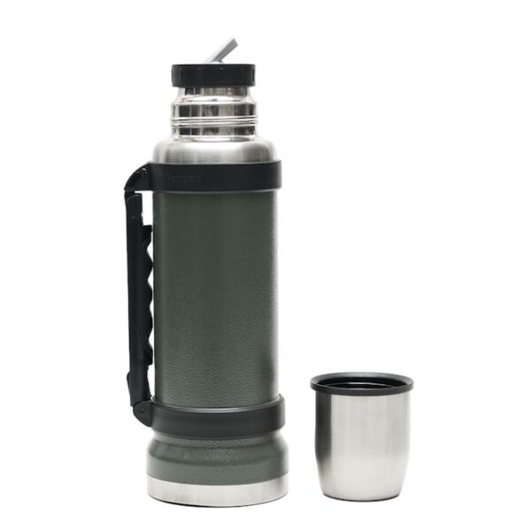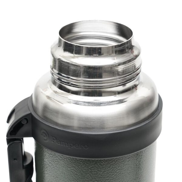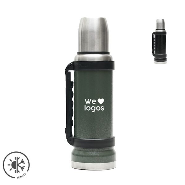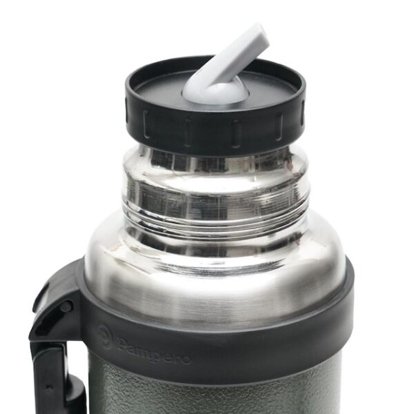 Tazas, jarras y termos, TodosTermo de acero inoxidable 304, recubierto con esmalte especial que protege de ralladuras y golpes. Puede mantener el contenido a la misma temperatura durante 18hs, gracias a su doble pared aislante especial de acero. Cuenta con un tapón cebador Hermético a rosca con la función anti derrame y tapa con superficie plana estable para usar como taza o vaso y manija plegable para facilitar el transporte. Presentado en caja de cartón. Medidas del termo: 34 cm x 10,5 cm. Medidas de la caja: 35 x 11 x 11 cm. Capacidad: 1,1 Lts.