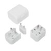 Adaptador de corriente universal, para conexión en cualquier tipo de enchufe al estar de viaje. Medidas: 5,7 x 5 x 4 cm.
